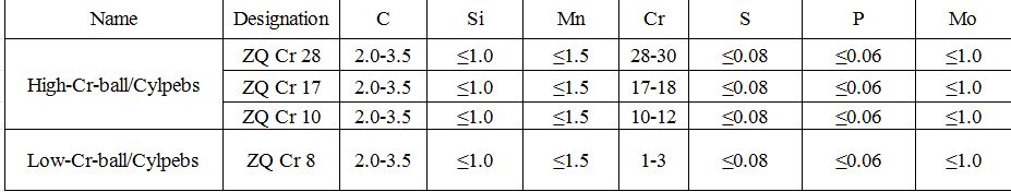 High chrome high hardness cast steel grinding cylpebs balls for ball mills